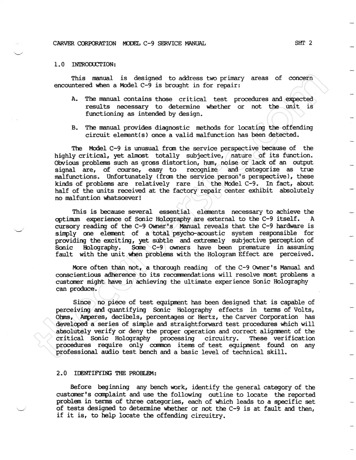 cptimm experience of Sonic Holography are external to the C-9 itself . A