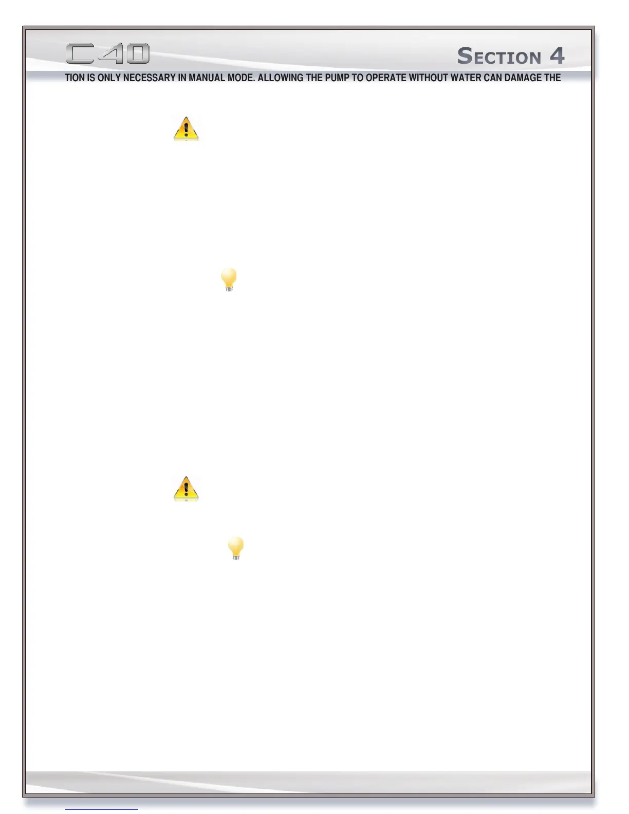 on the bilge pump. While underway, use the helm switches to manually turn the bilge pumps on, and let the pumps