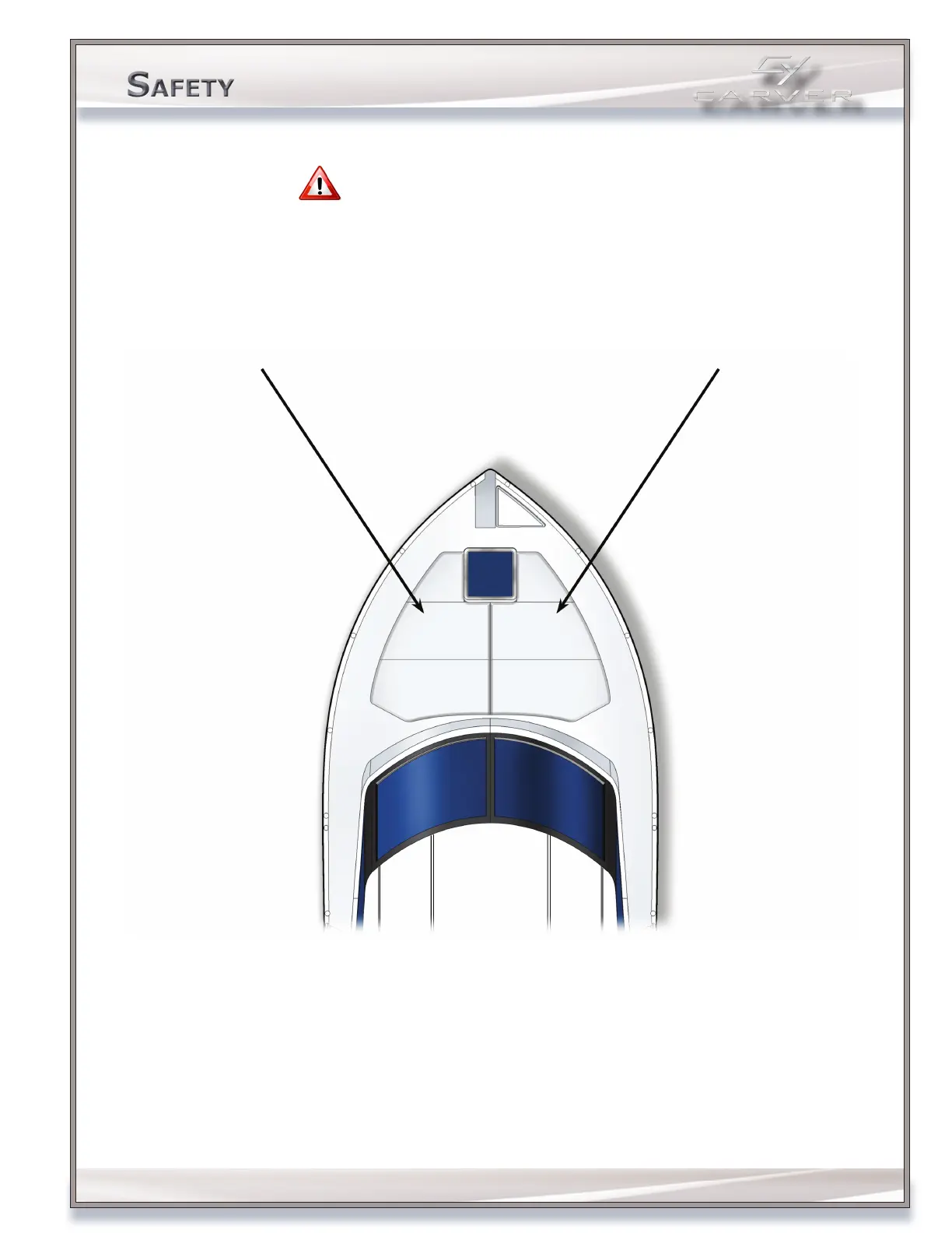NEVER ALLOW PASSENGERS TO RIDE ON THE FORWARD SUNPAD WHILE THE YACHT IS UNDERWAY. SUDDEN