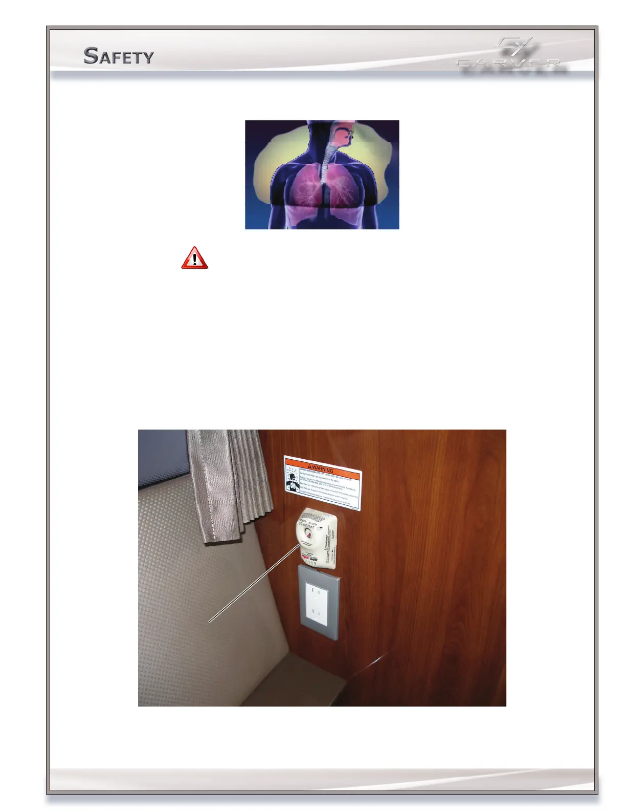 CO detectors are standard on all Carver yachts. Have the detectors professionally tested at regular intervals. Monitors are