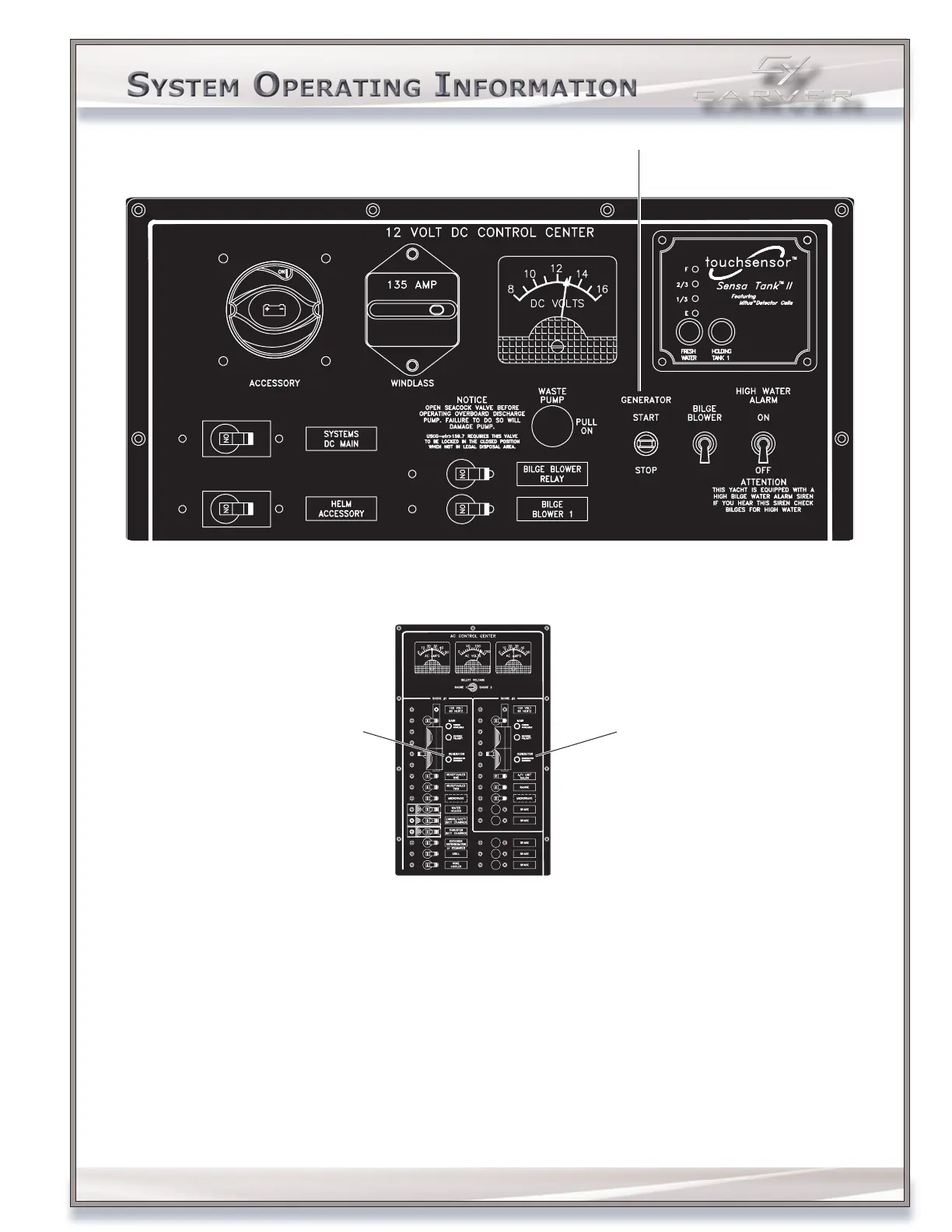 Power to the panel is supplied by either a shore power connection or the generator.