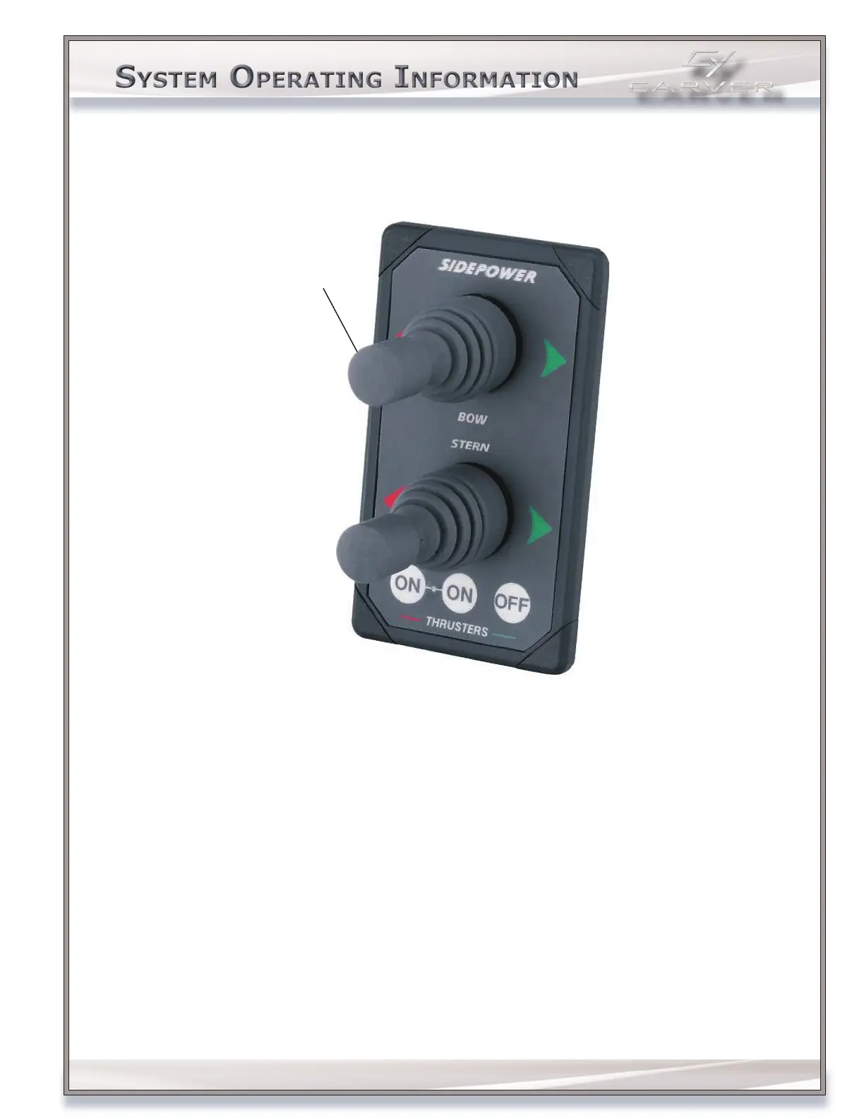 thrust of the stern. They are controlled by a dual joystick at the helm. FORE and AFT movement of the vessel is