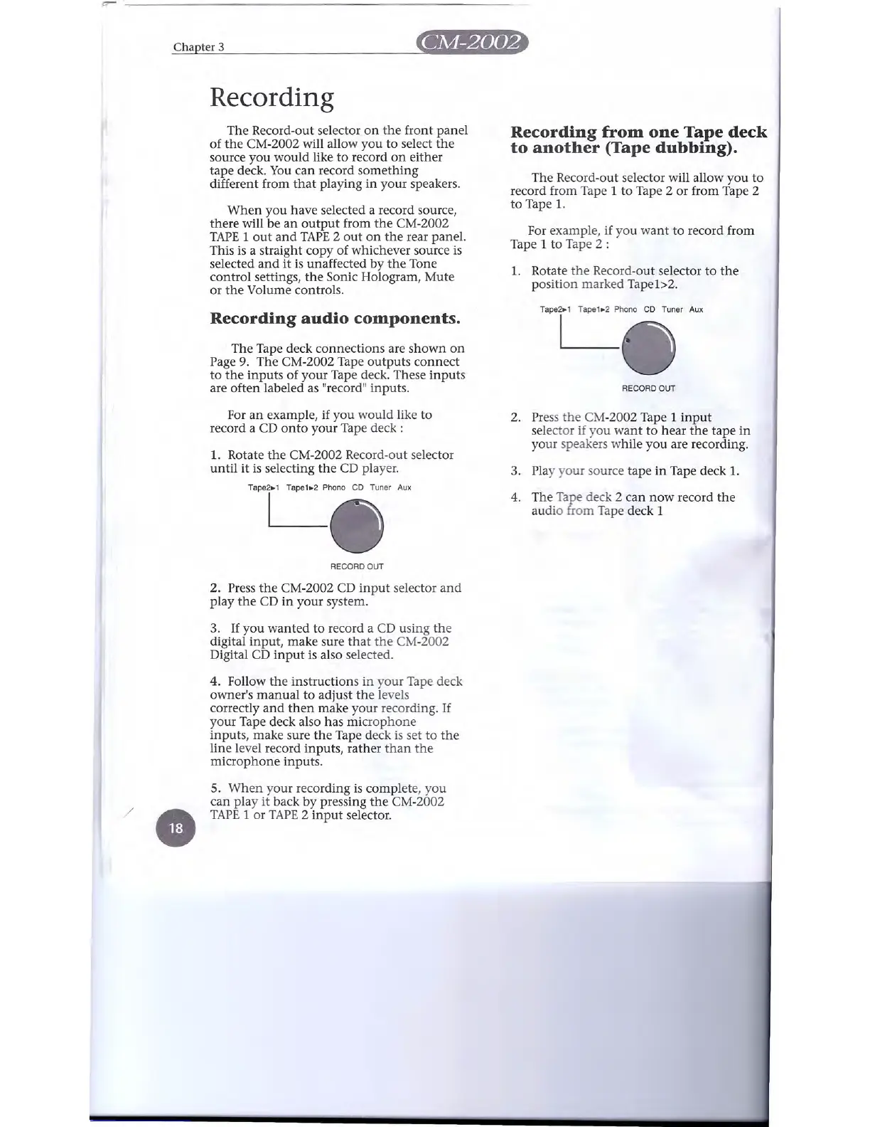 Page 9. The CM-2002 Tape outputs connect