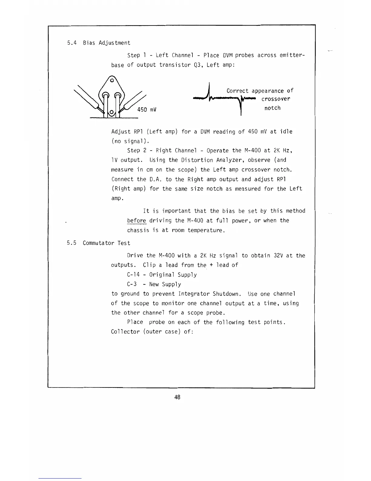 Carver M-400A - Bias Adjustment; Commutator Test