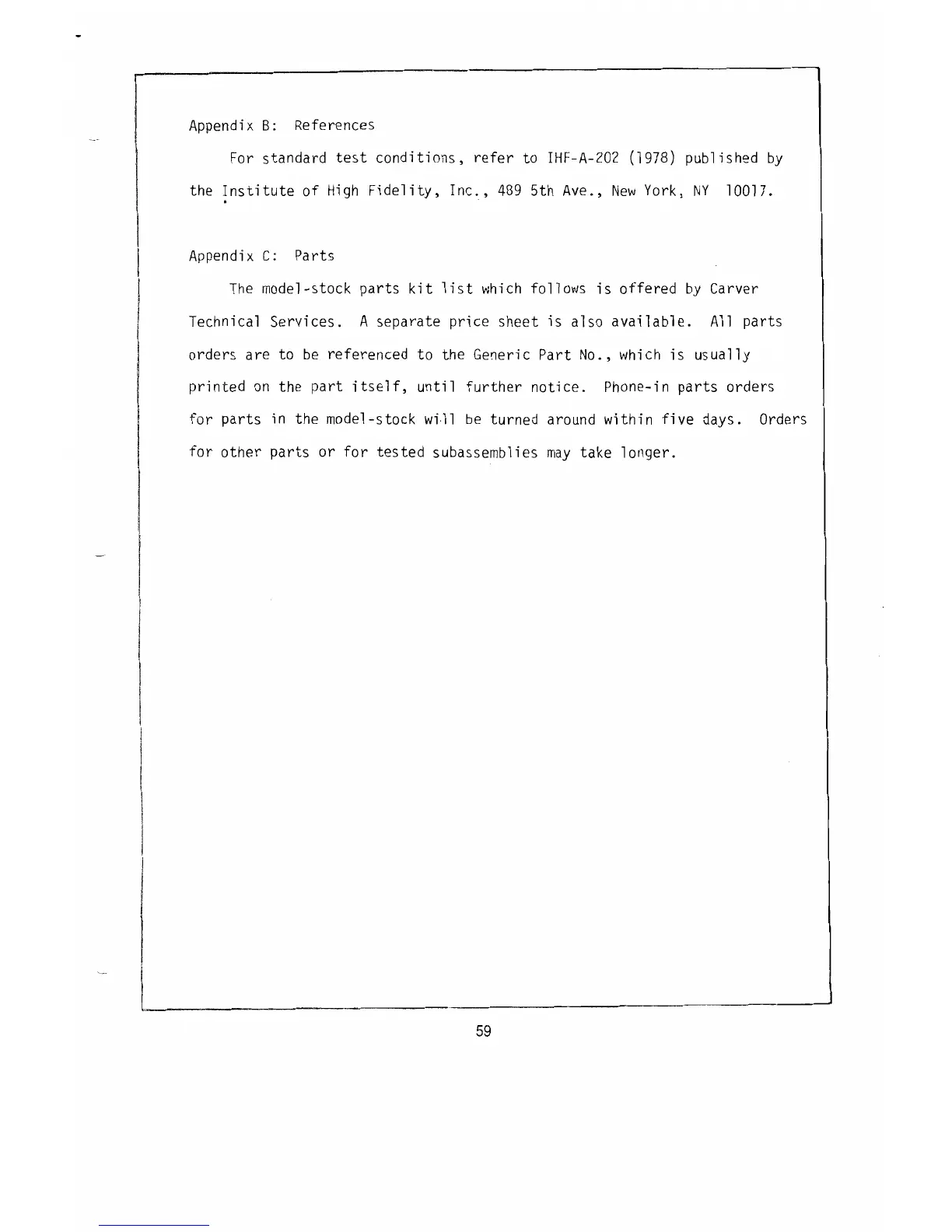Carver M-400A - References; Parts
