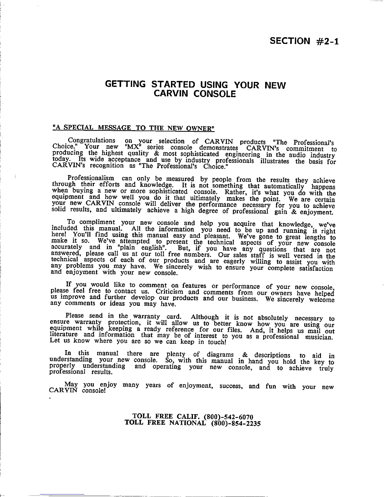 CARVIN MX 2488 - Getting Started Using Your New Carvin Console