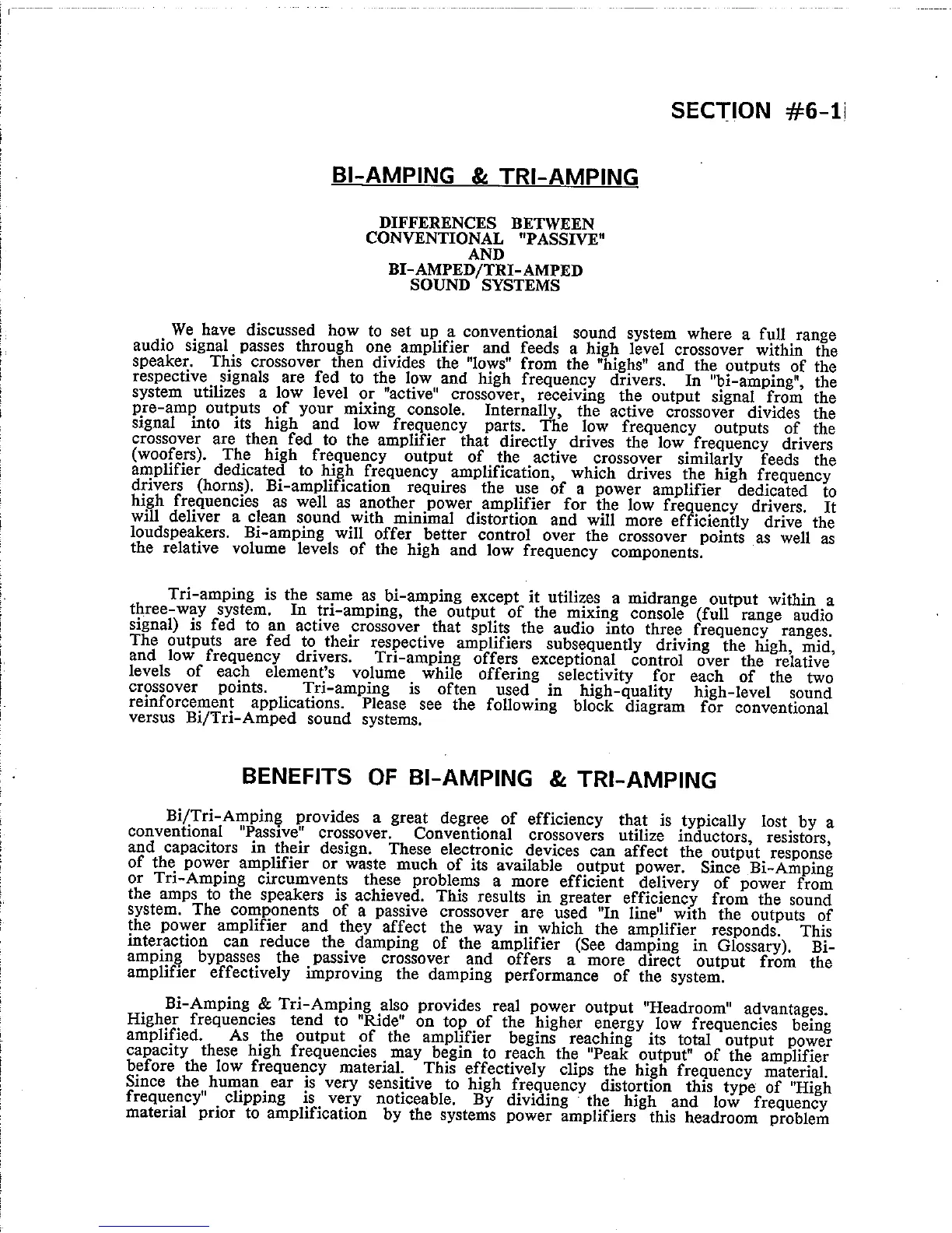 CARVIN MX 2488 - Bi-Amping & Tri-Amping; Benefits of Bi-Amping & Tri-Amping