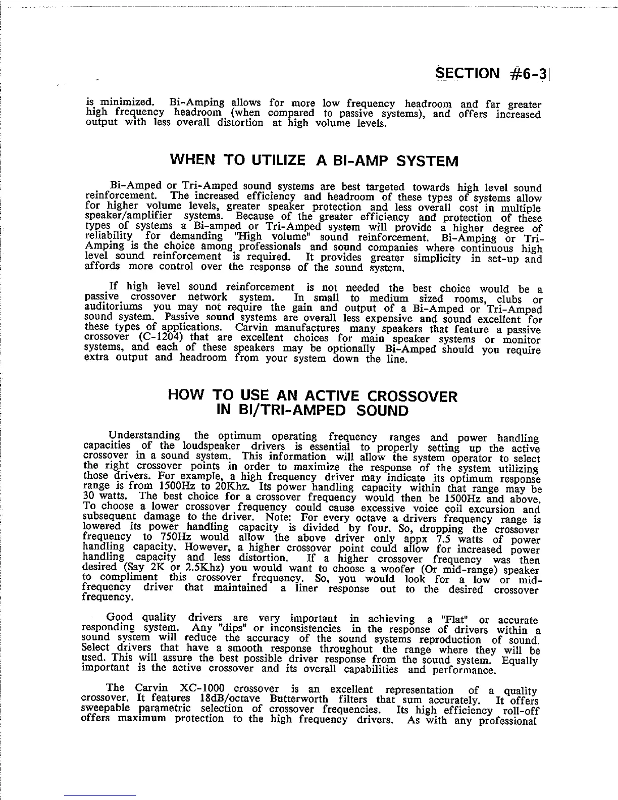 CARVIN MX 2488 - When to Utilize a Bi-Amp System; How to Use an Active Crossover in Bi-Tri-Amped Sound