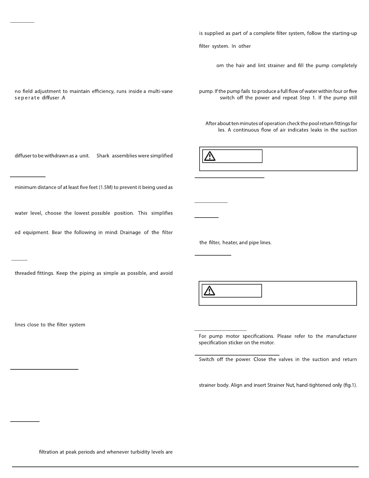 Warning). Locate the pump pre ferably in a dry, shaded, and well-venti-