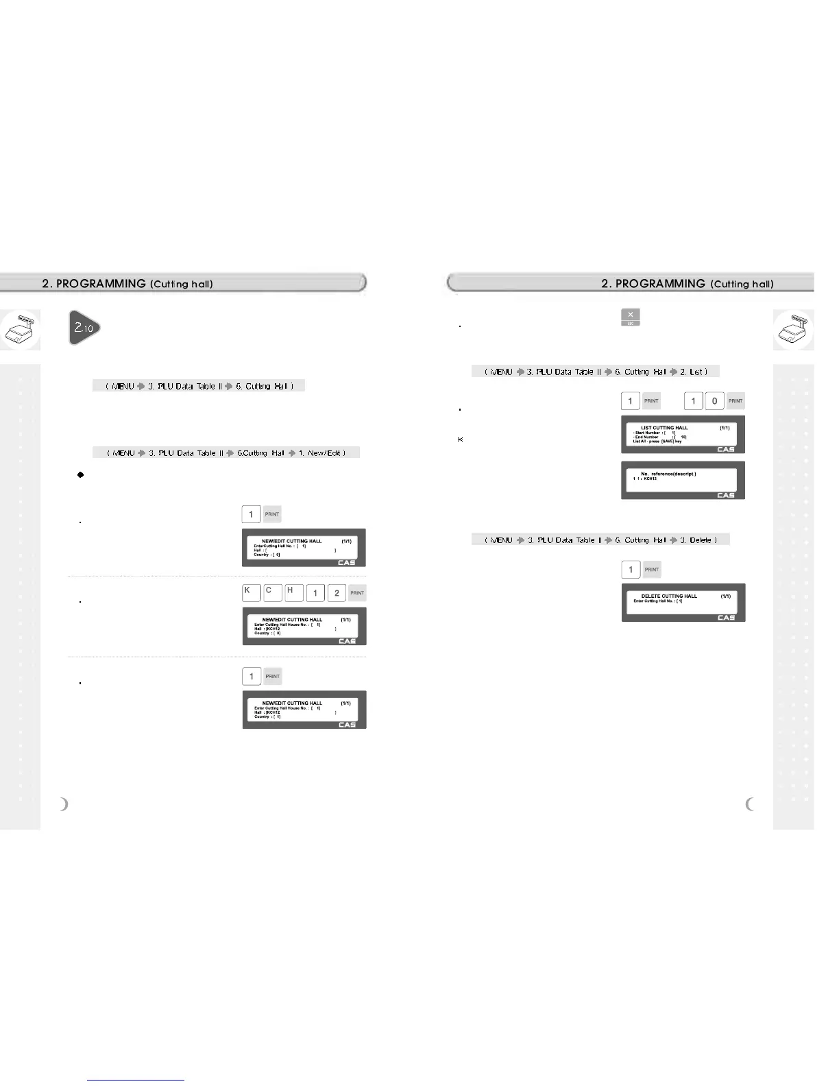 1. Enter cutting hall number to delete