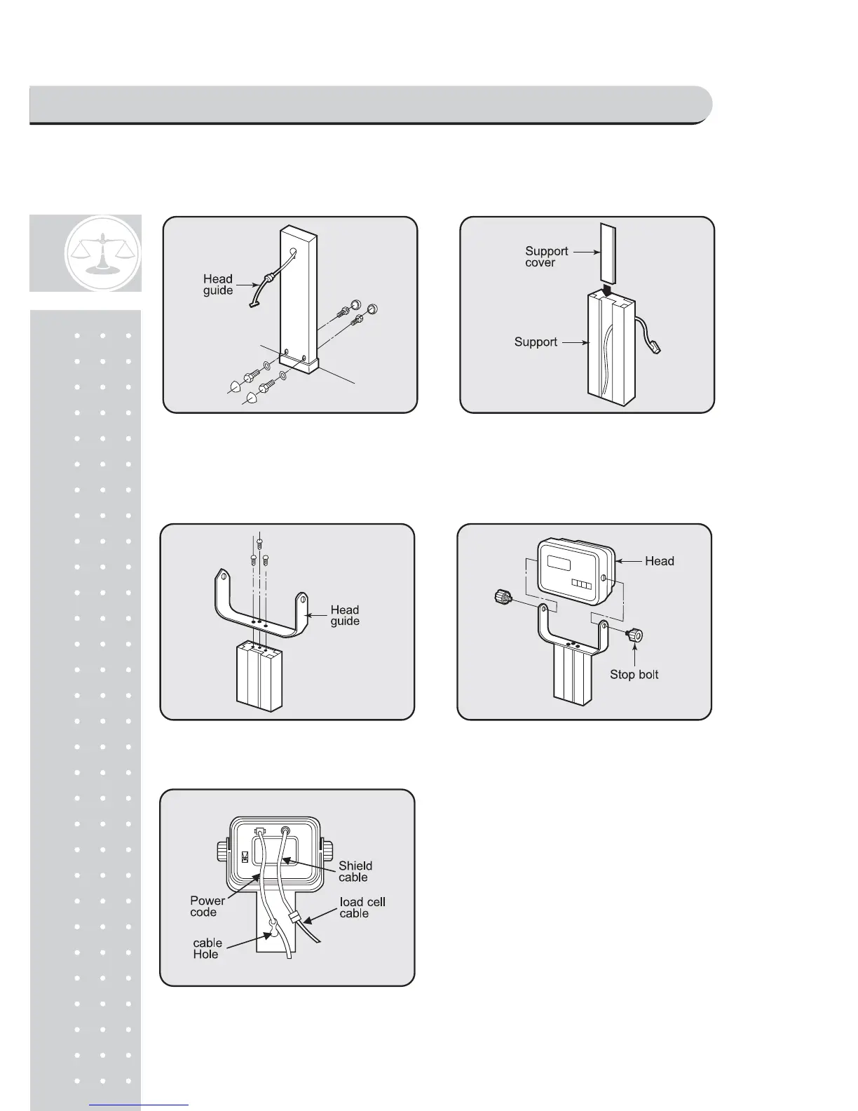 3. Please fix the head guide with bolt. 4. Please connect head part to Head guide