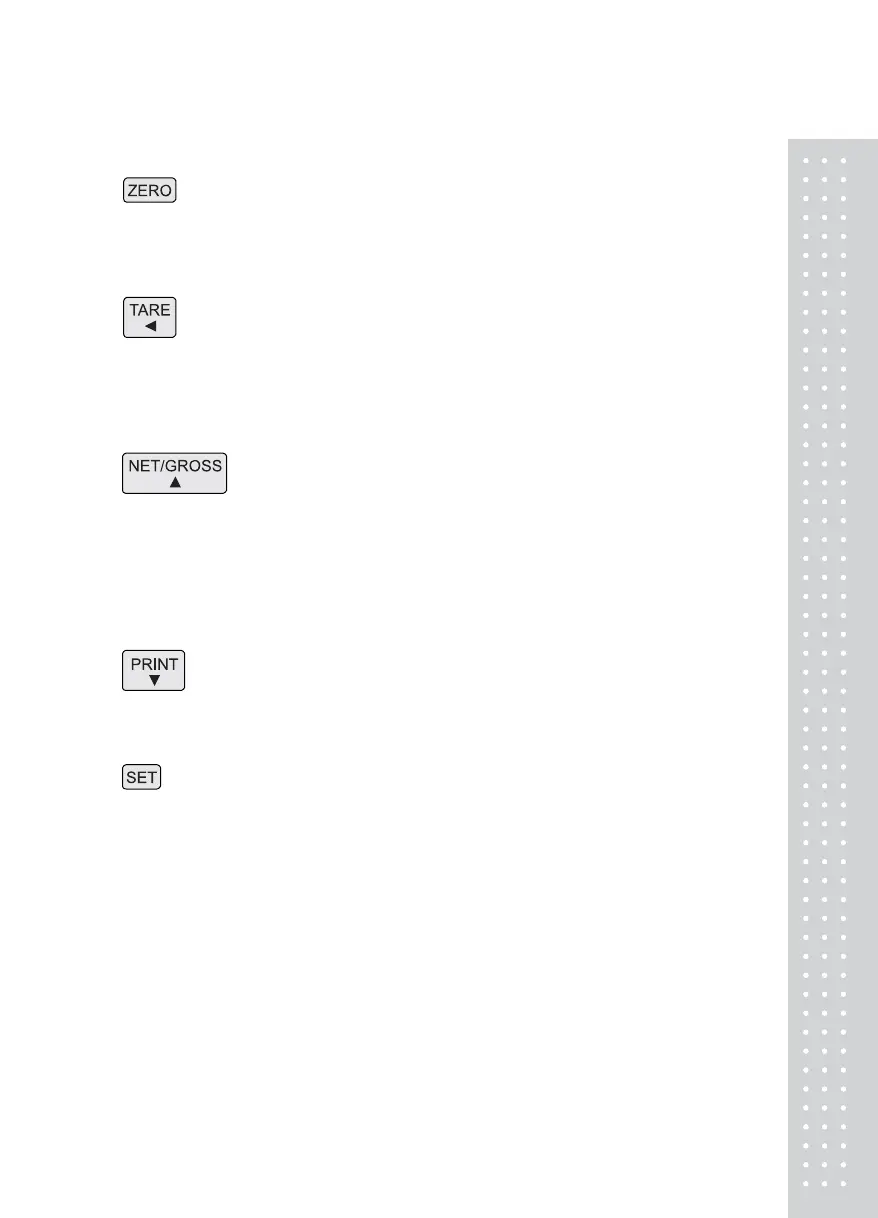 ■ When this key is pressed, the scale stores current weight as the tare weight.