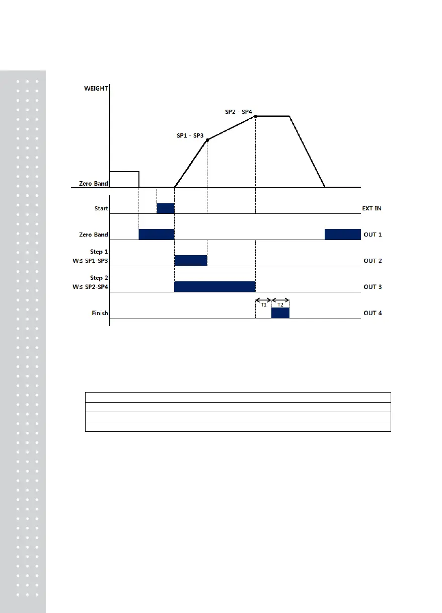 Step 1 : Start ON, (W ≥ SP1 – SP3) OFF