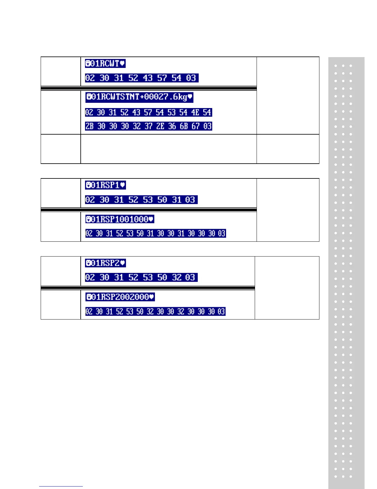 Weight (Include decimal point)(7) Unit(2) ETX(1) = Total 22 BYTE