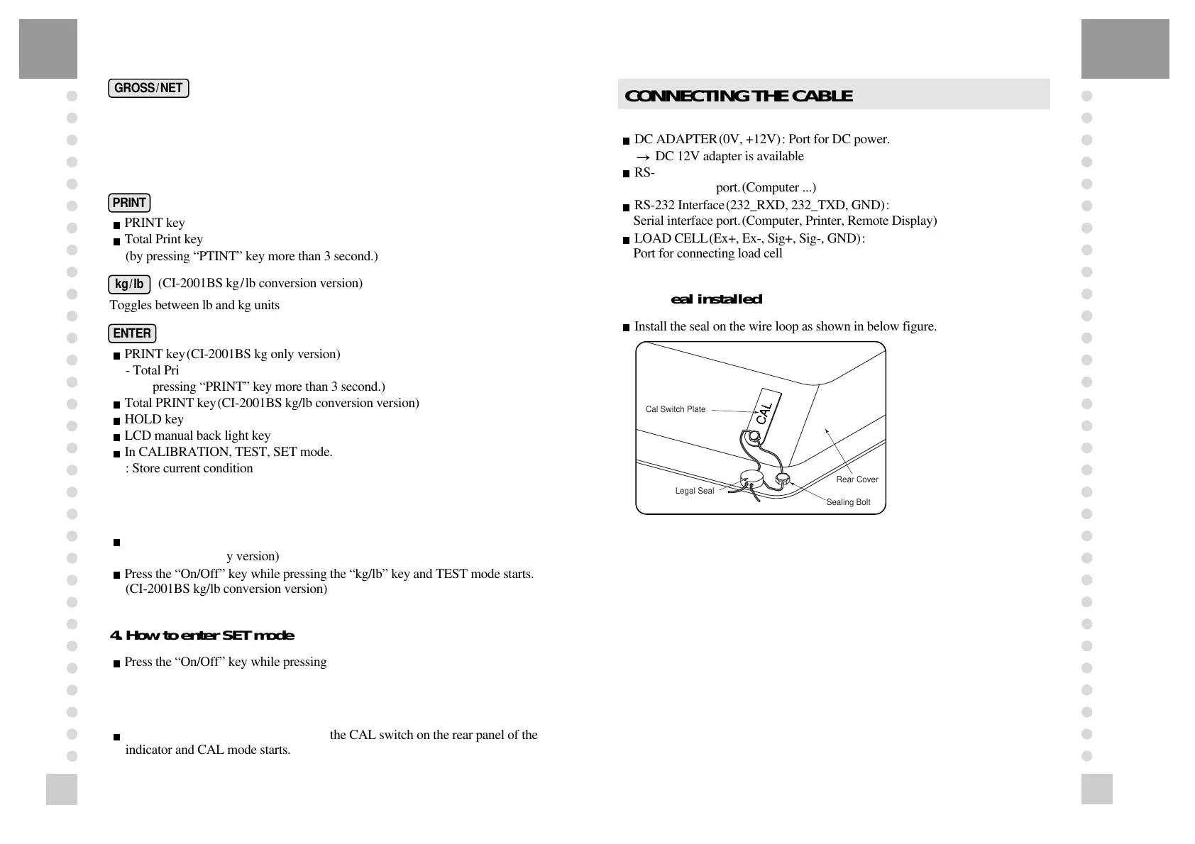 Total PRINT key(CI-2001BS kg/lb conversion version)