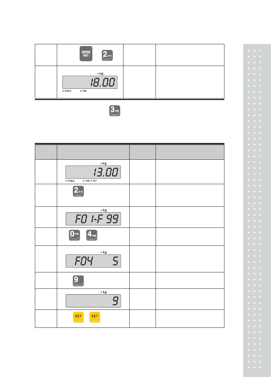 Note 1. In order to clear Tare, press
