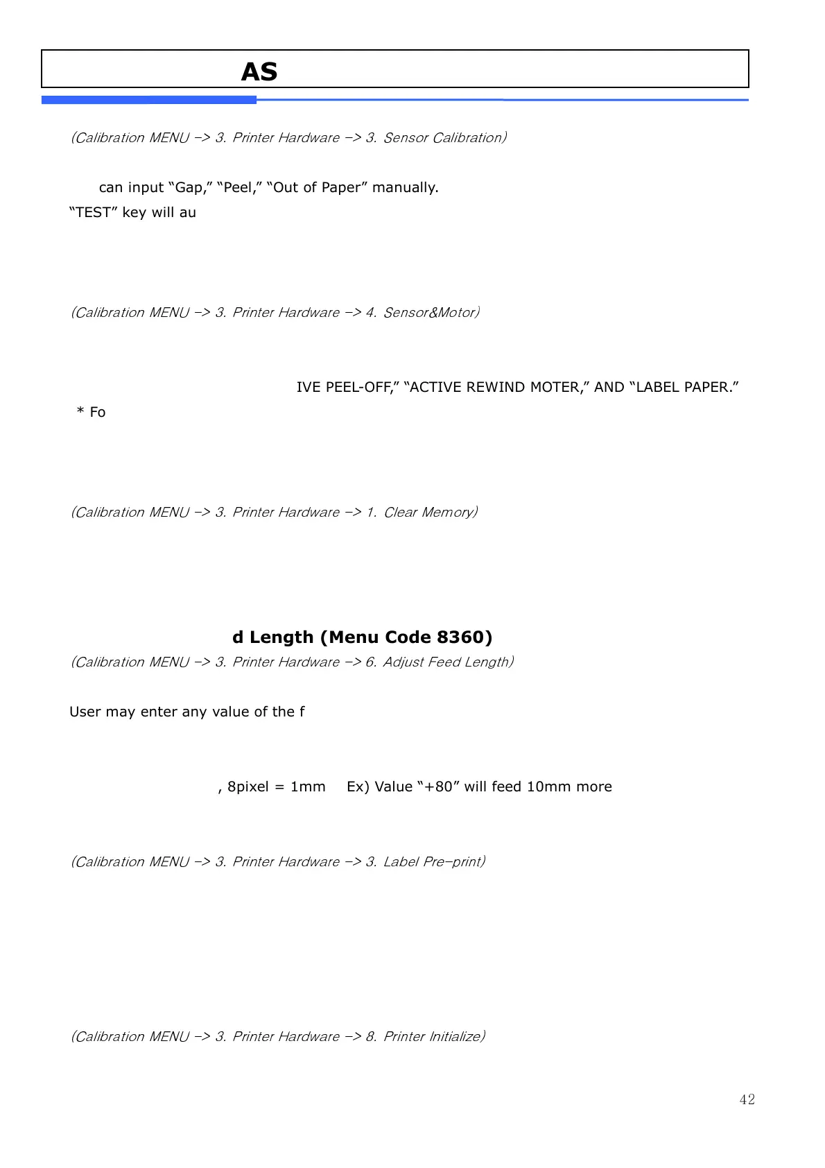 (Calibration MENU -> 3. Printer Hardware -> 8. Printer Initialize)