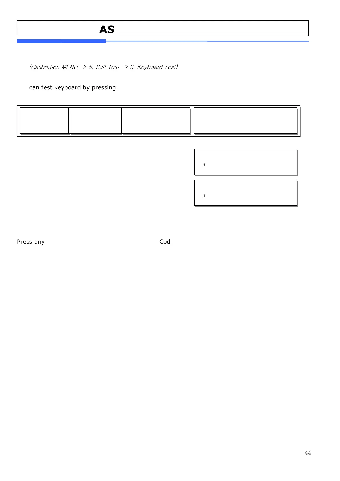 (Calibration MENU -> 5. Self Test -> 3. Keyboard Test)