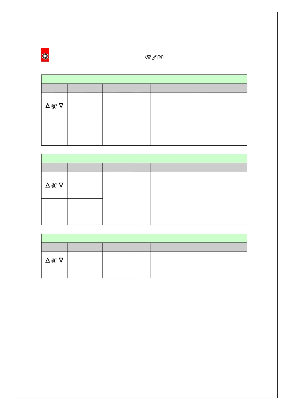 KEY FUNCTION DISPLAY VAL. DESCRIPTION