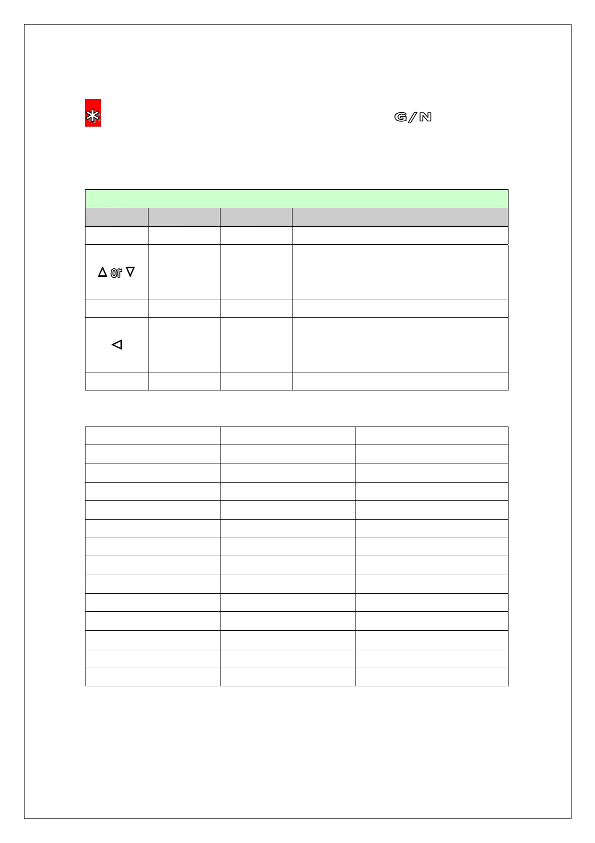 KEY FUNCTION DISPLAY DESCRIPTION