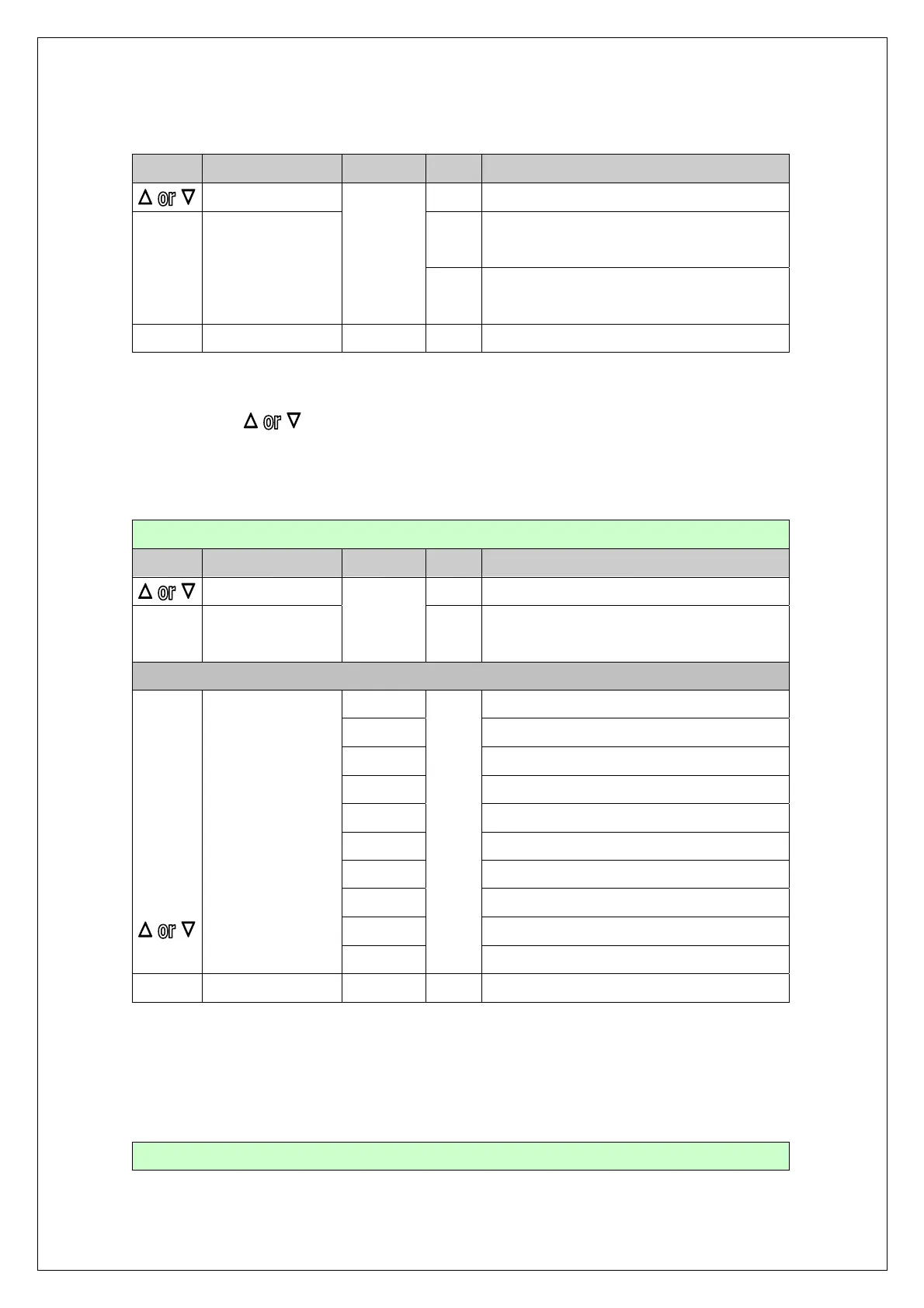 KEY FUNCTION DISPLAY VAL. DESCRIPTION