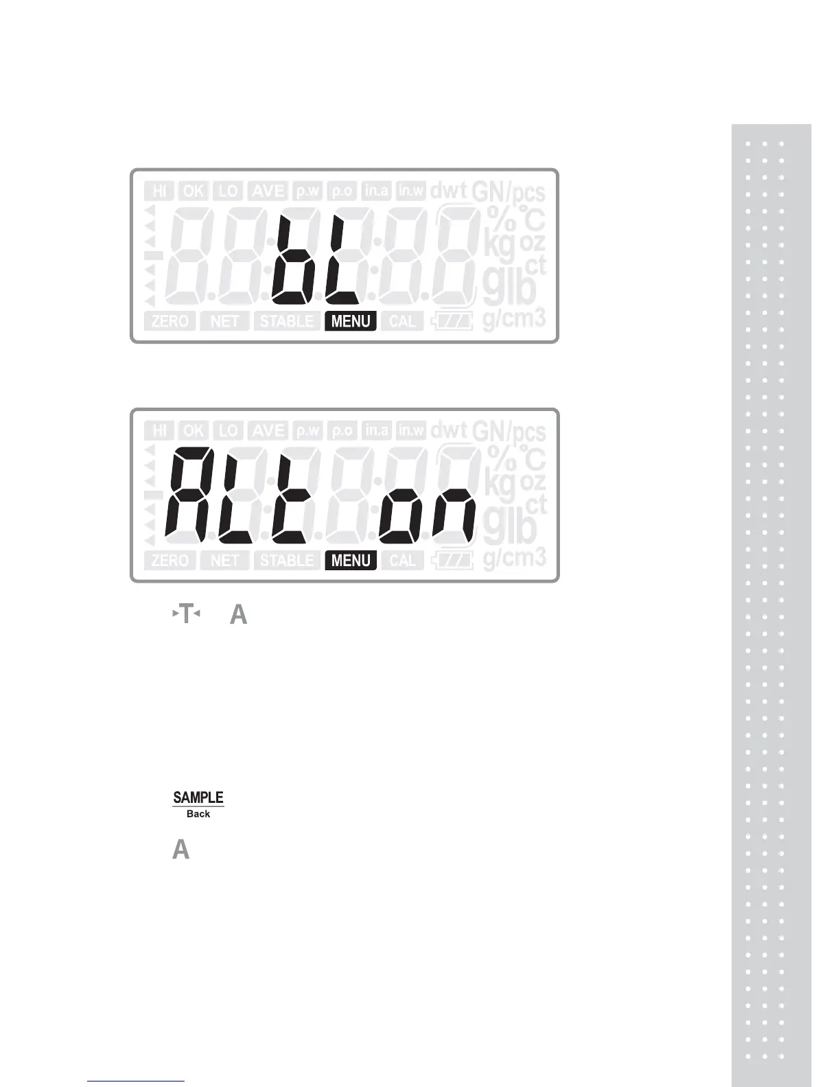 Press ENTER key to confirm the choice and return to normal weighing mode; or