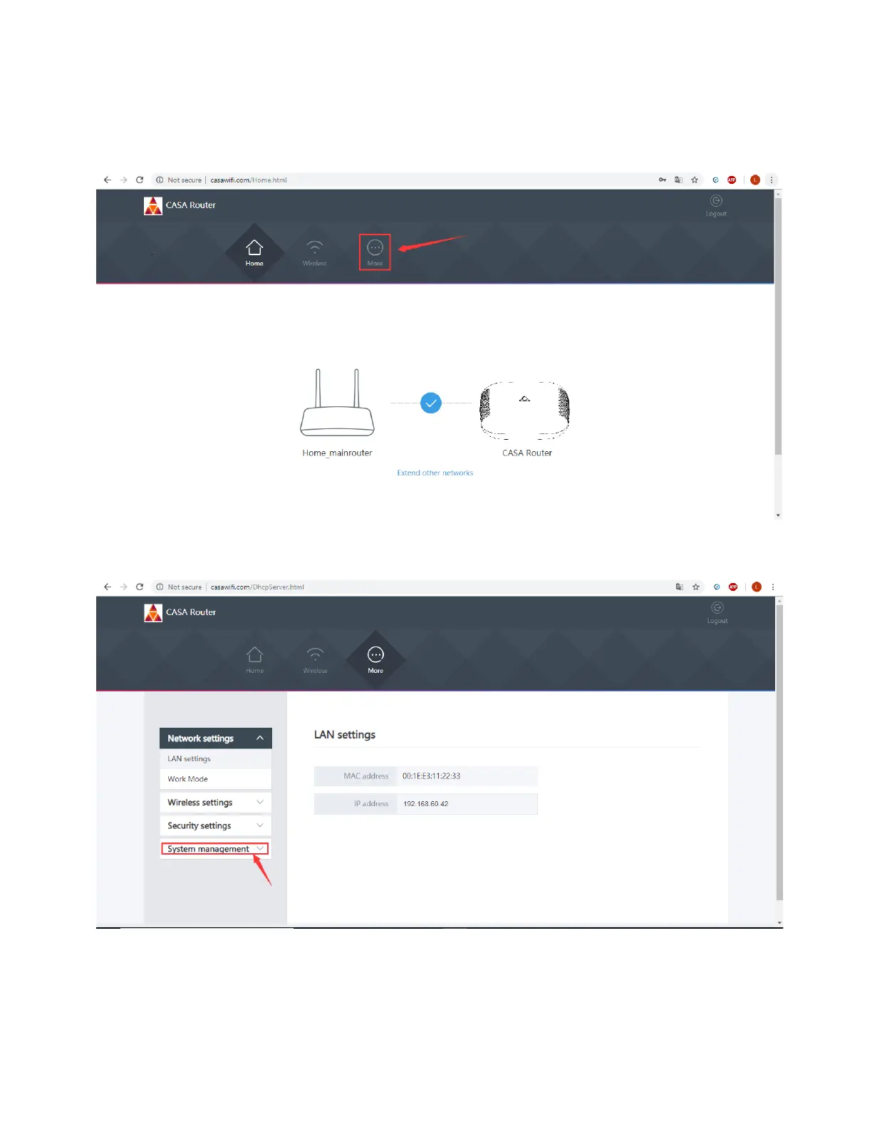 2. Under Network Settings, click System management as shown below.