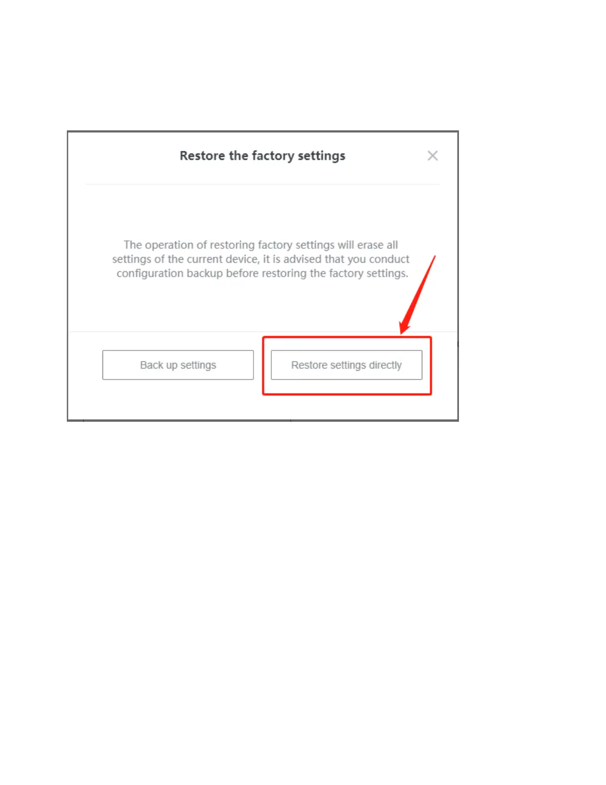 3. Once you confirm the factory reset, the Restore the factory settings window displays.