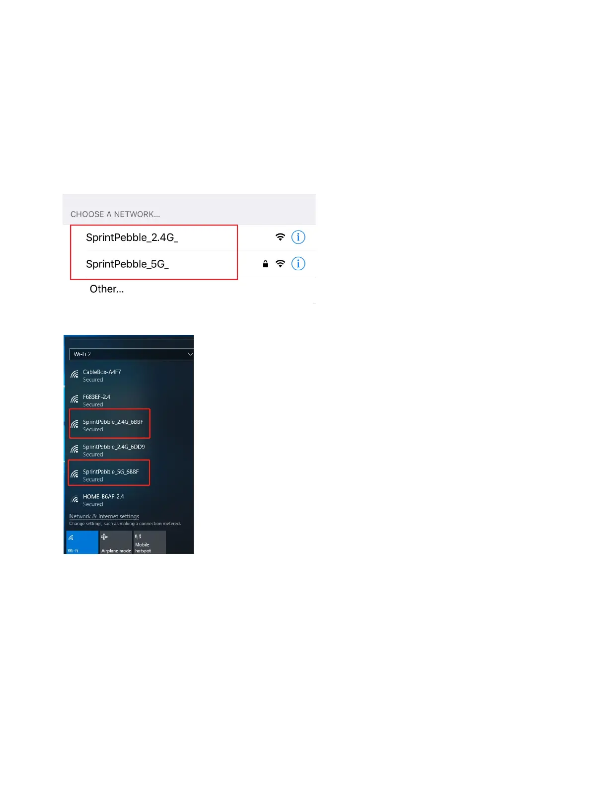 Note: The default SSID is "SprintPebble_2.4G_XXXX" and “SprintPebble_5G_XXXX”.