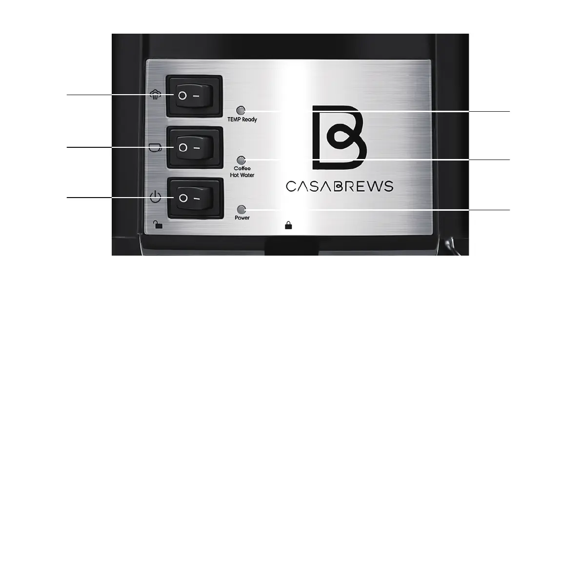B. Espresso Button: Press to “—”= brew espresso manually, and press to “O”=stop brewing.
