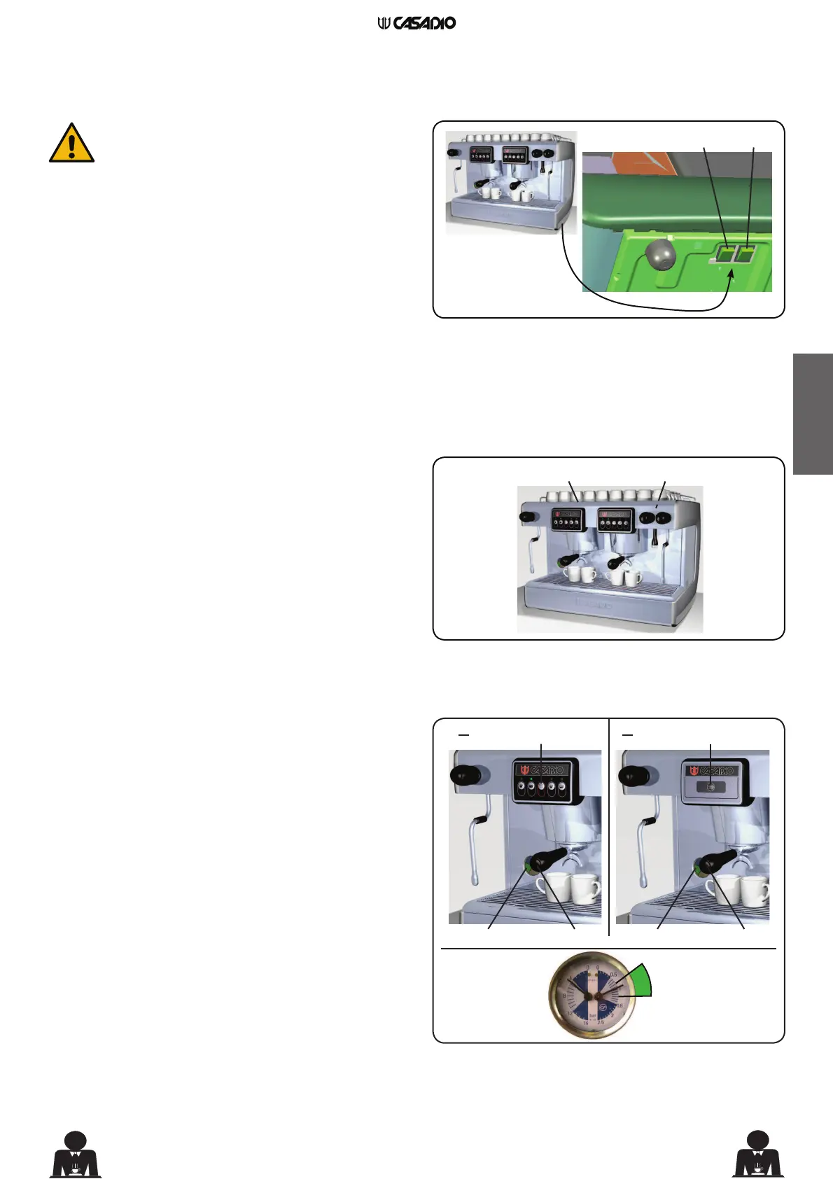 sant sur un des interrupteurs du débit du café, la machine