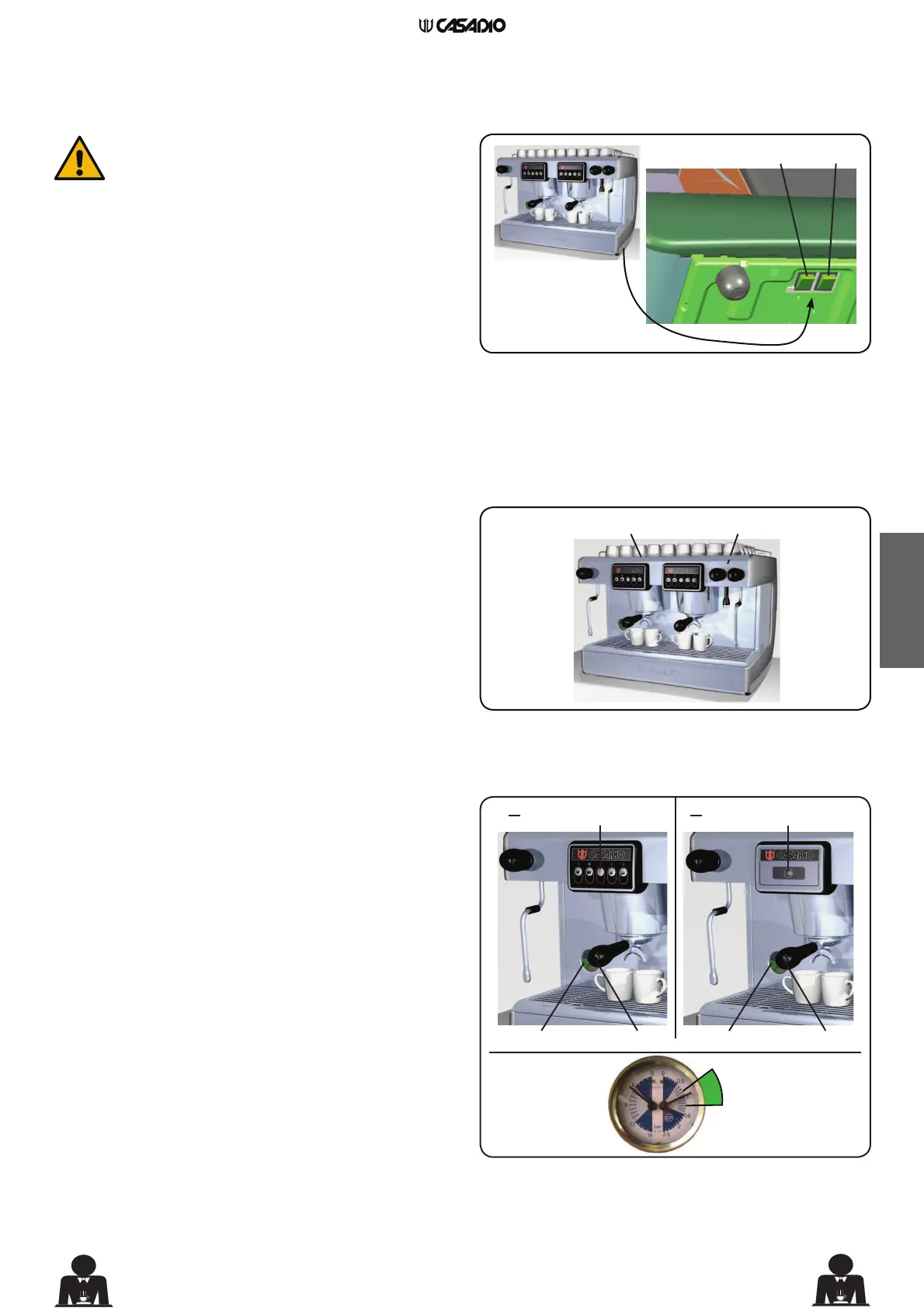 Die Maschine ist nun betriebsbereit (Kaffee-, Dampf- und
