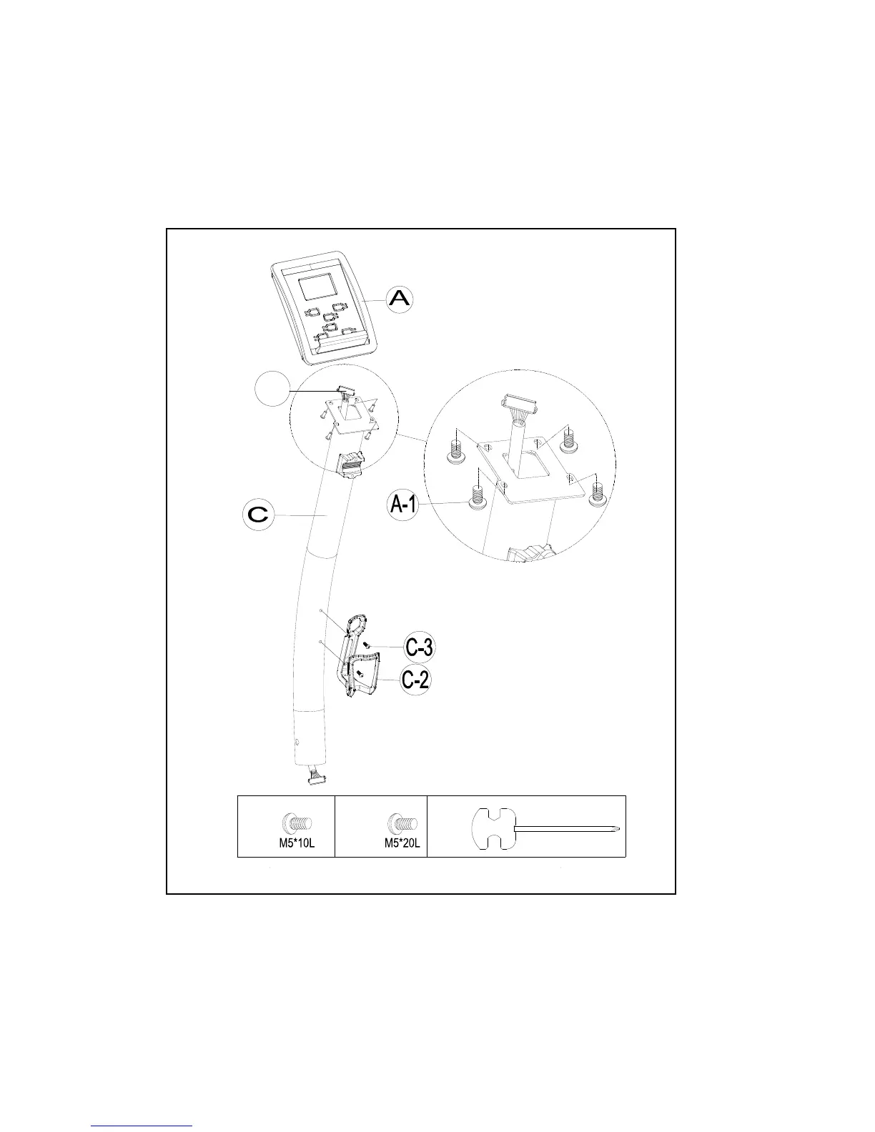 2. Remove the pre-installed Screws (C-3) on the handlebar post first, and then assemble the