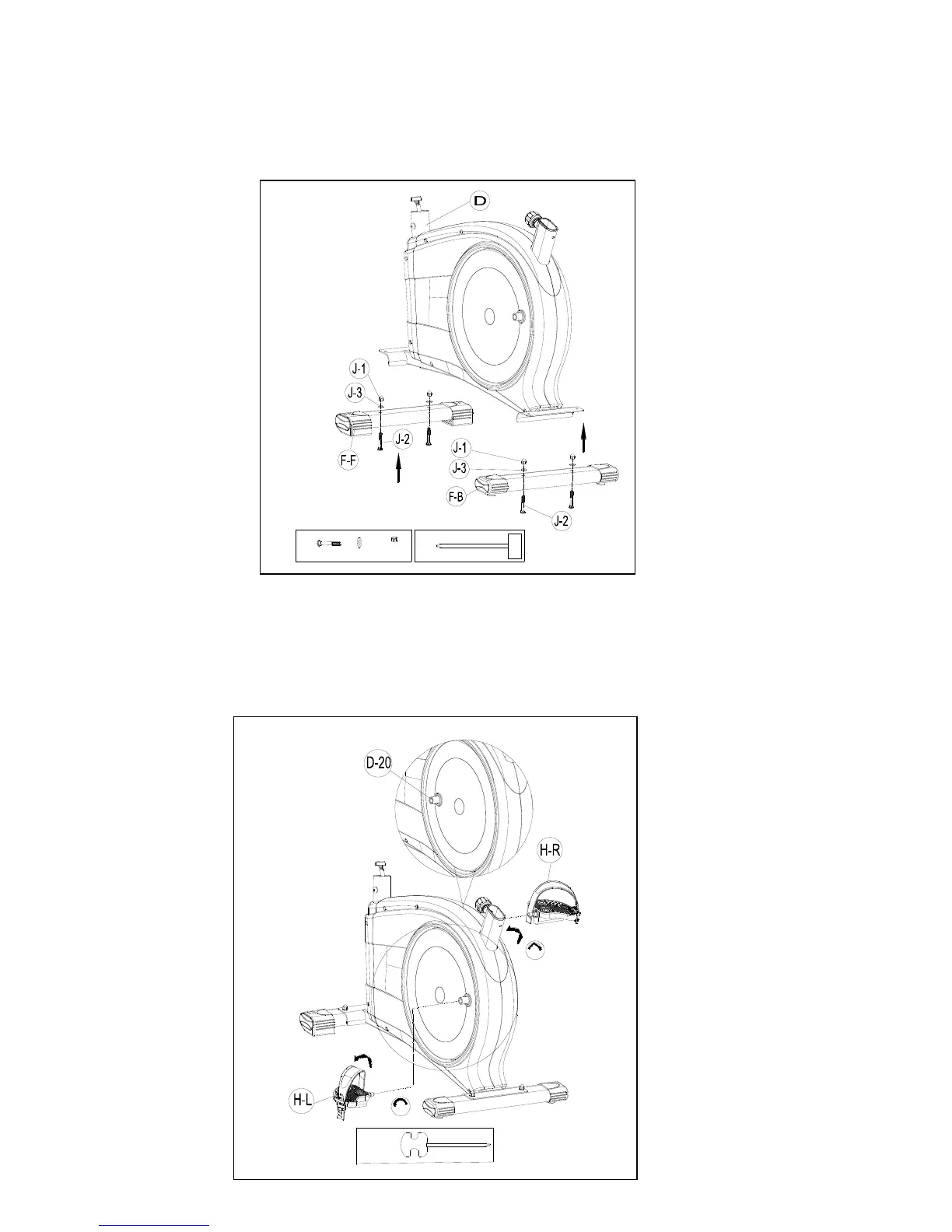 1. Attach the Front Stabilizer (pt.F-F) to the Main Frame (pt.D) using M8xP1.25x55L Carriage