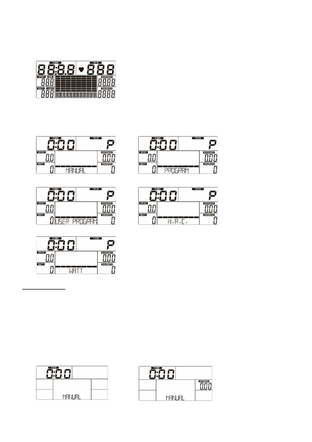 1. Use UP or DOWN (Encoder) to select workout program, choose MANUAL and press MODE