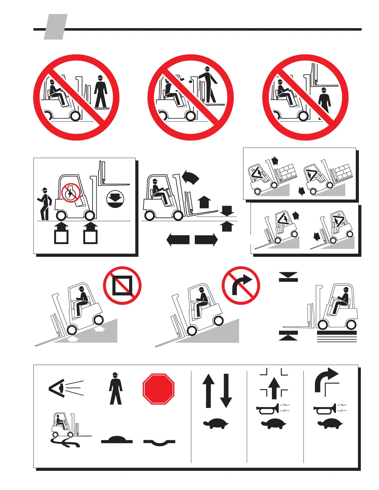 No riders No reach through mast No standing under load