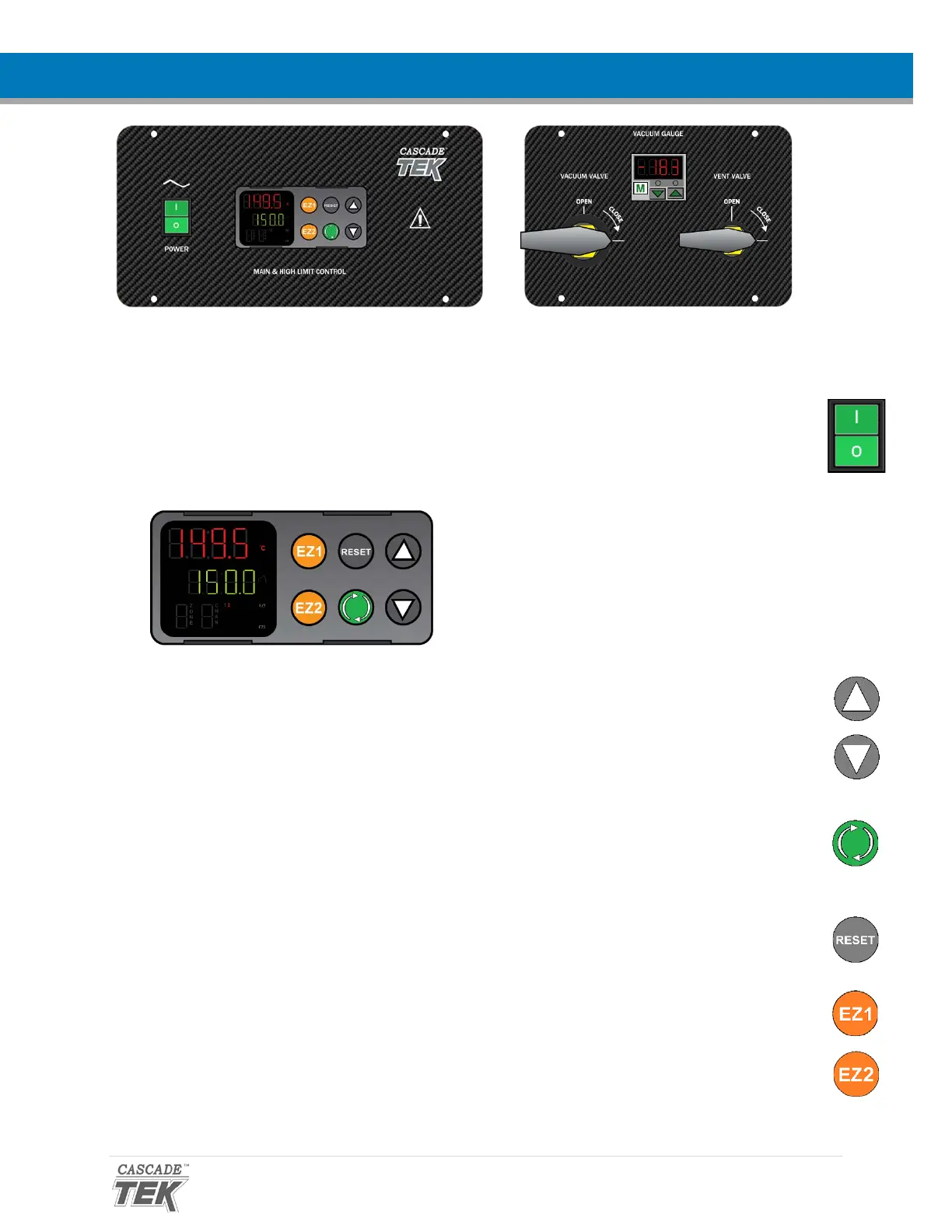 The EZ1 button launches heating Profile 1. Pushing EZ1 again while running aborts Profile 1.
