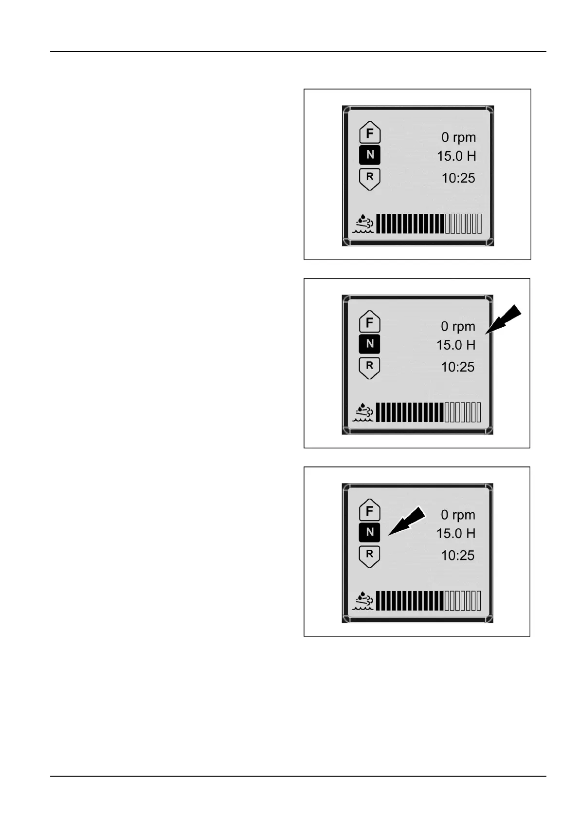 Thestart-upscreenshowsthemachinehours,RPM,and