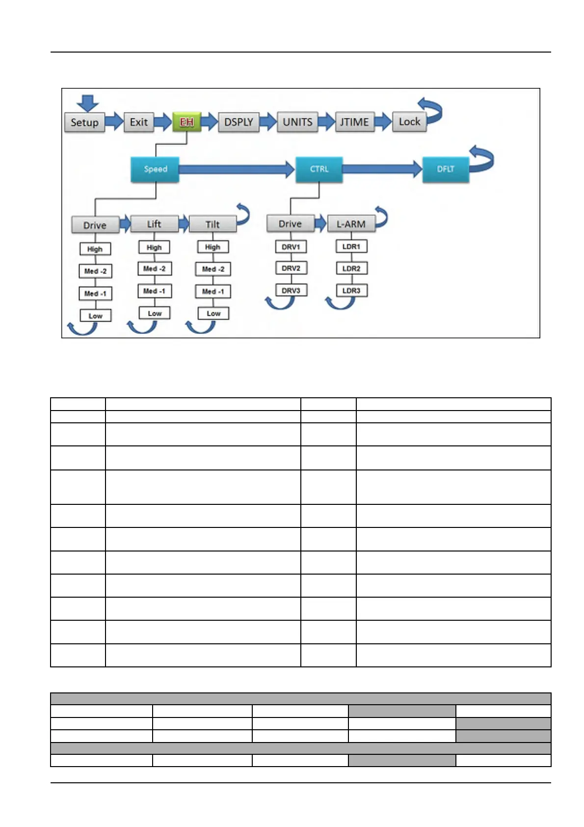 SpeedSpeedofthedrive,lift,andtiltfunctions.