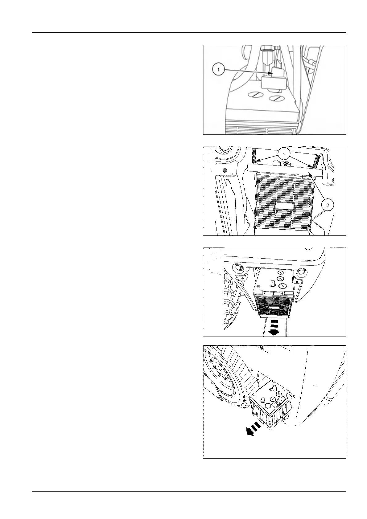 5.Loosenthenuts(1)andremovethebatteryhold-down