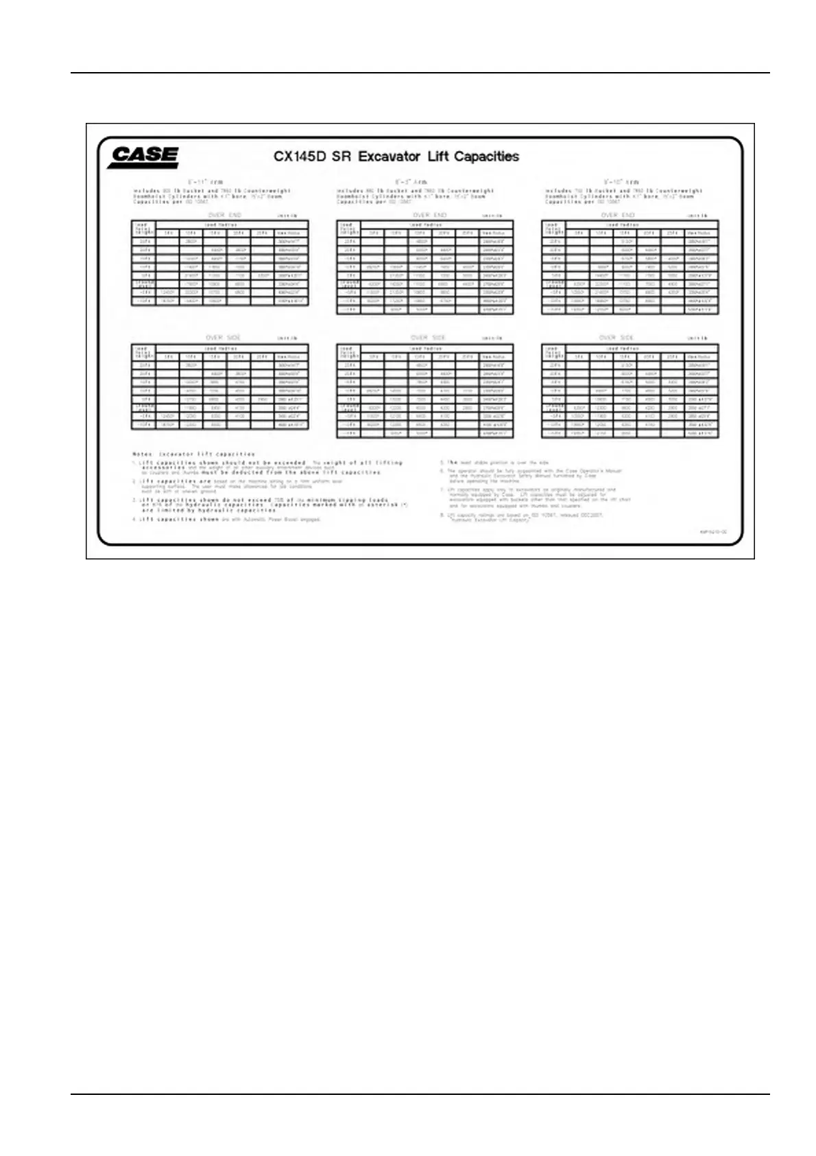 7.LiftcapacitiesapplyonlytoexcavatorsasoriginallymanufacturedandnormallyequippedbyCASECONSTRUC-