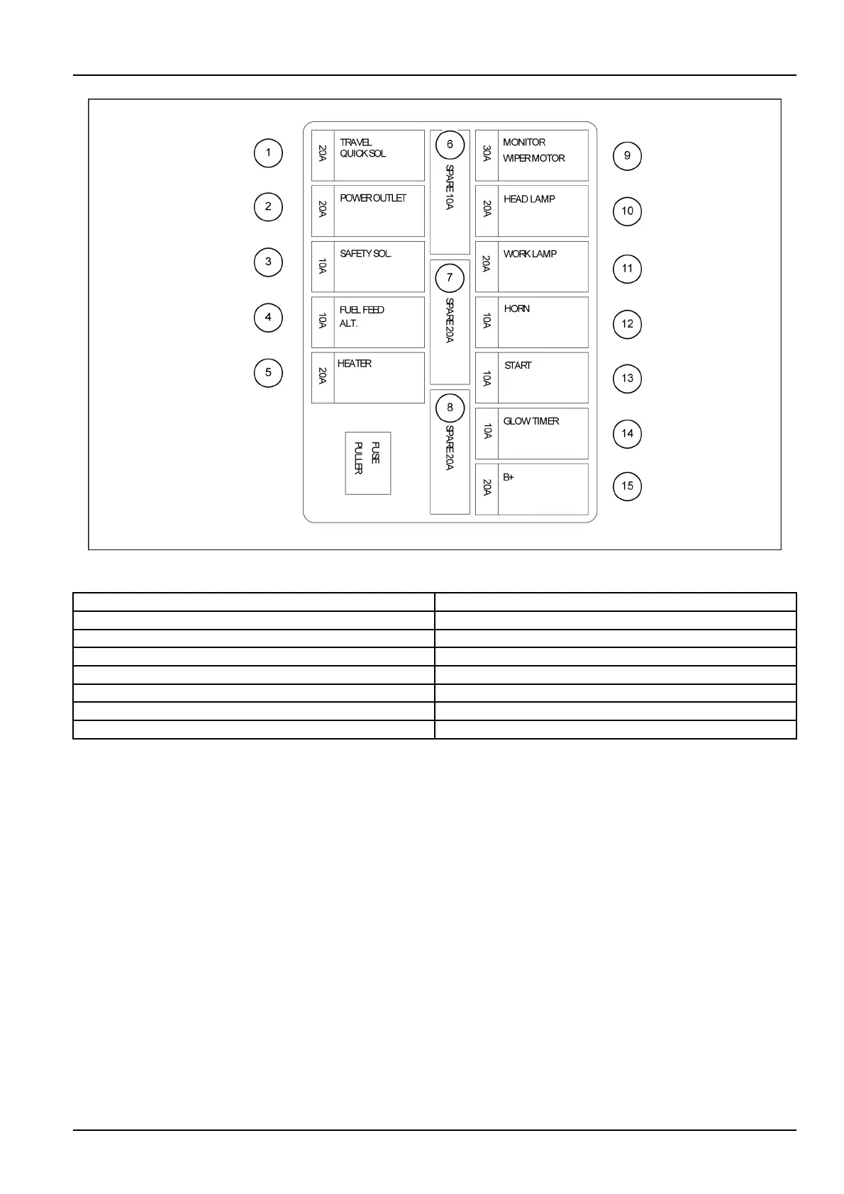 (3)Safetysolenoid10A(11)Worklamp20A