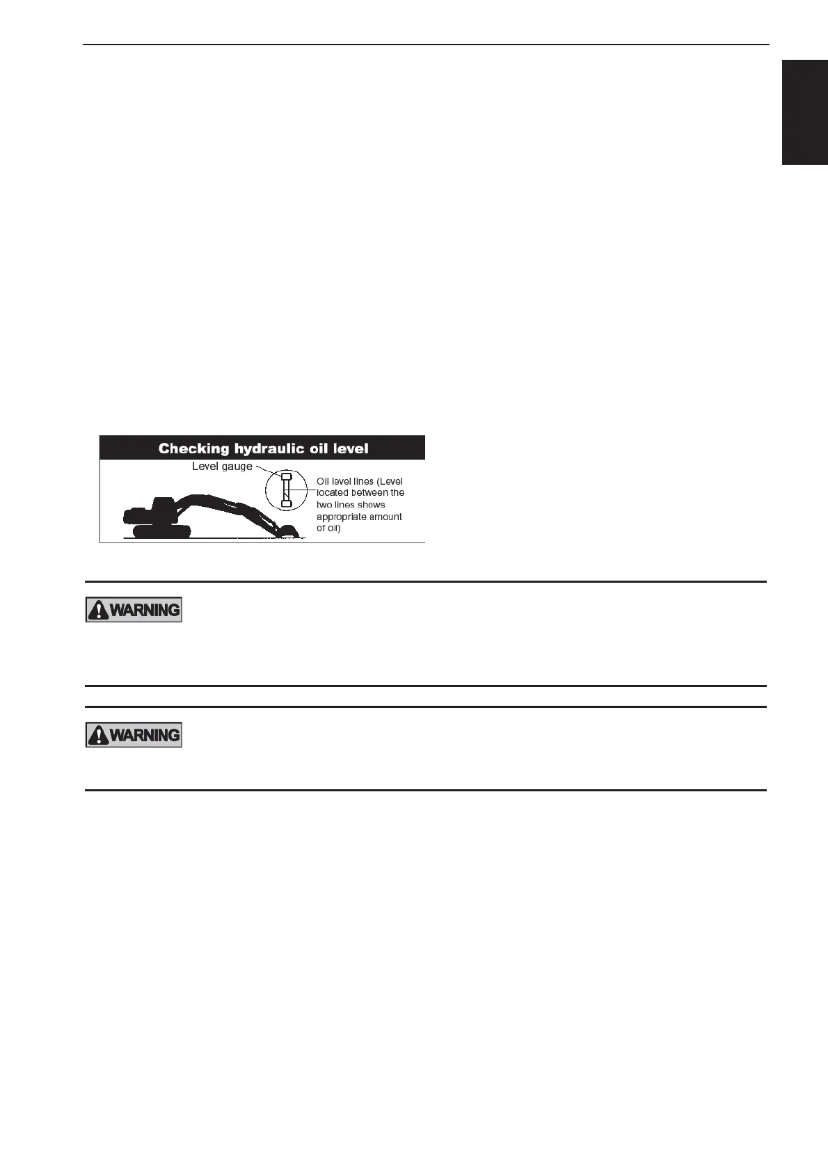 6. Check hydraulic oil level after placing the attachment to the oil check position, a nd replenish oil if