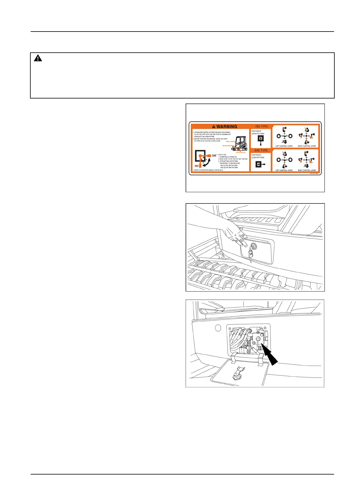Pilotcontrolshavetwodifferentbackhoecontrolspatterns;beforeoperatingthemachine,check