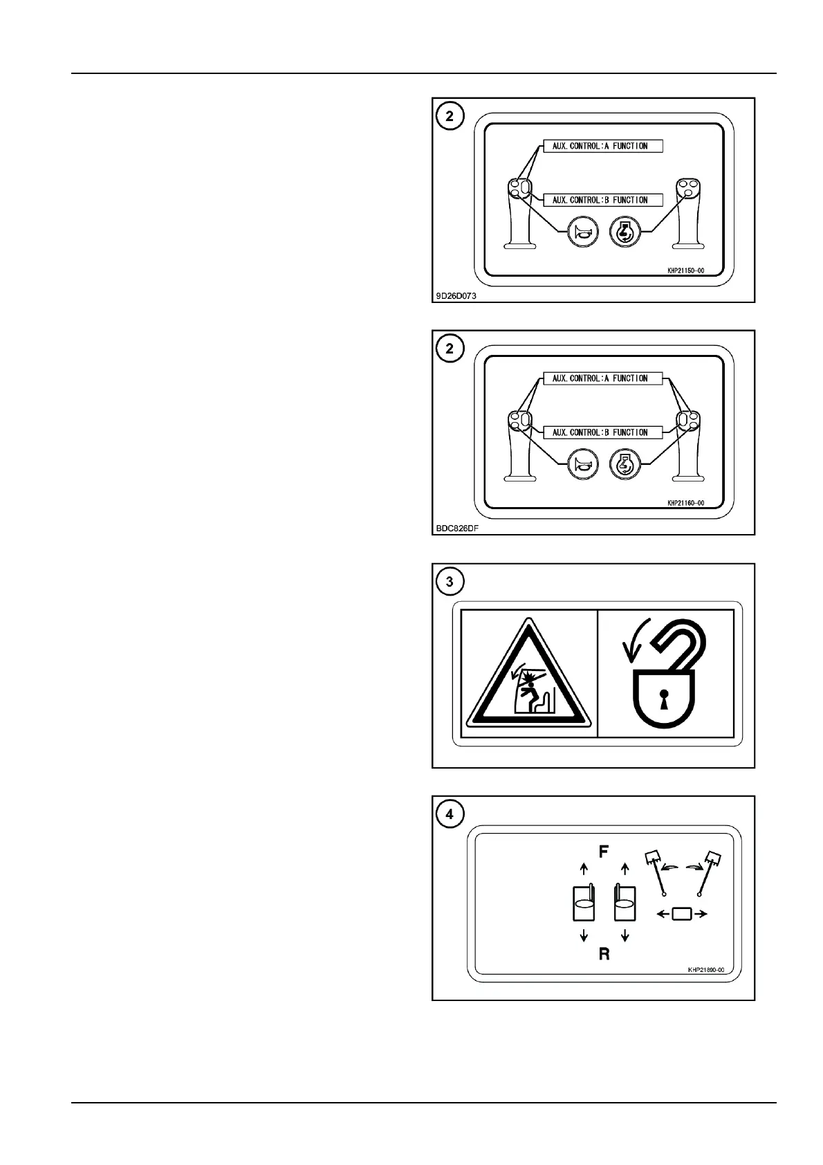 Thisdecalshowsthefunctionofthetravelcontrollevers