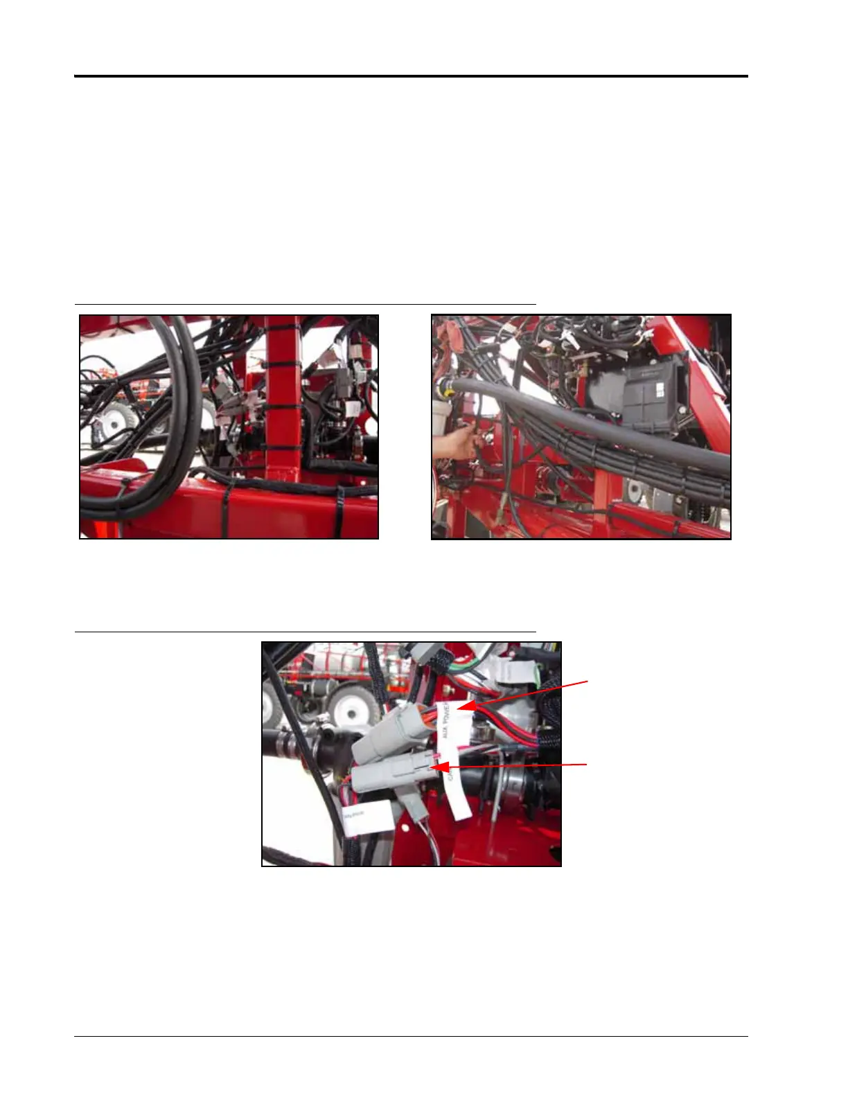 1. Locate the machine’s harness cable on the center boom section, near the pressure transducers on the spray