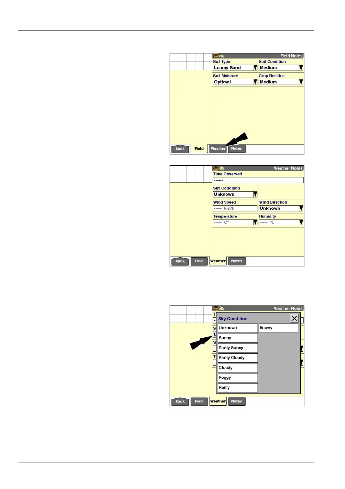 the“WeatherNotes”screen.