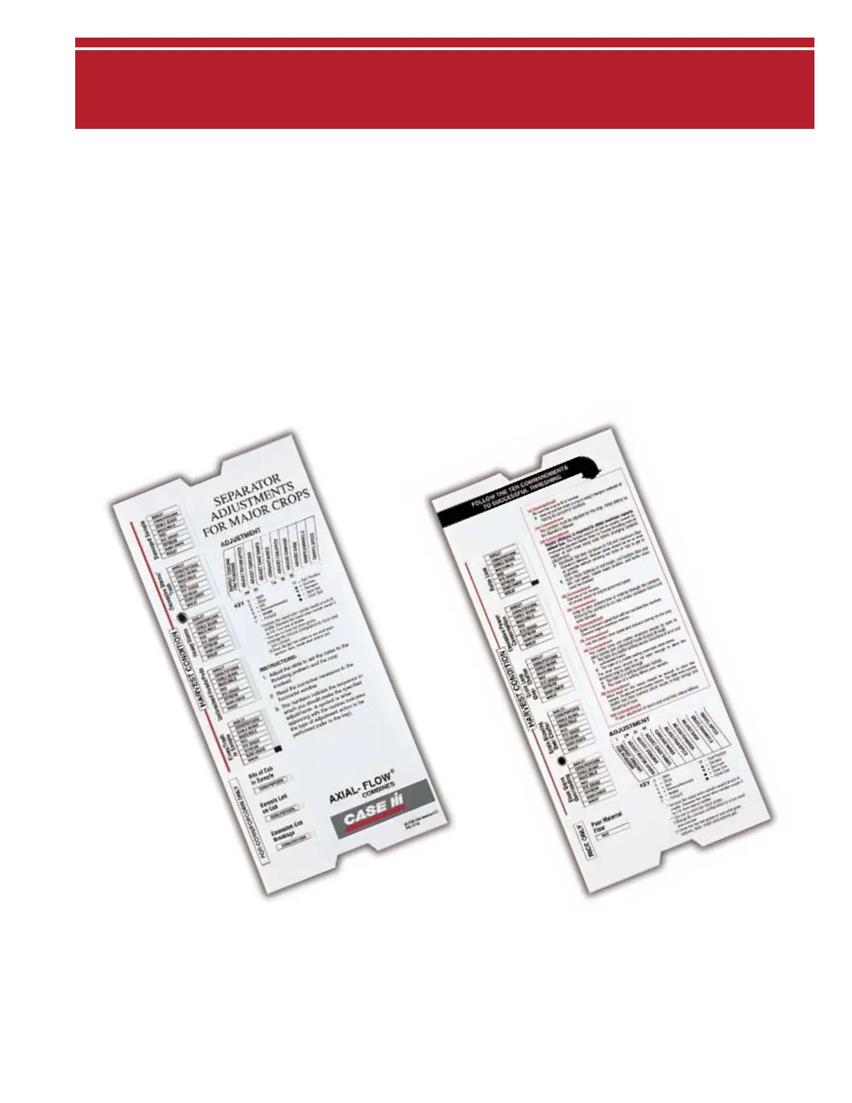 Slide rules cover most common crops, and fit easily in the buddy seat compartment to be readily available when needed. It is easy