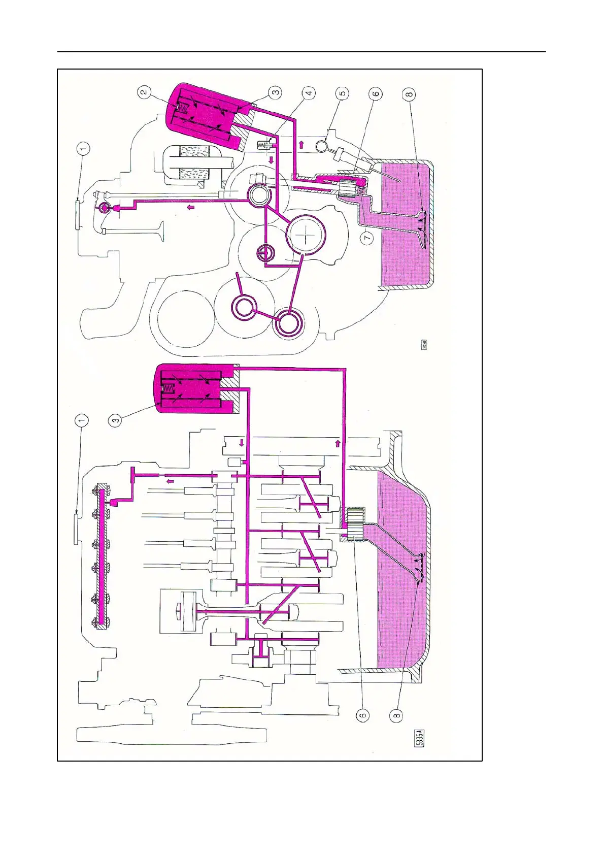 1. Oil filler cap 2. Filter safety valve (opens when oil pressure at filter inlet exceeds the outlet pressure by 1.5--1.7 bar/cm