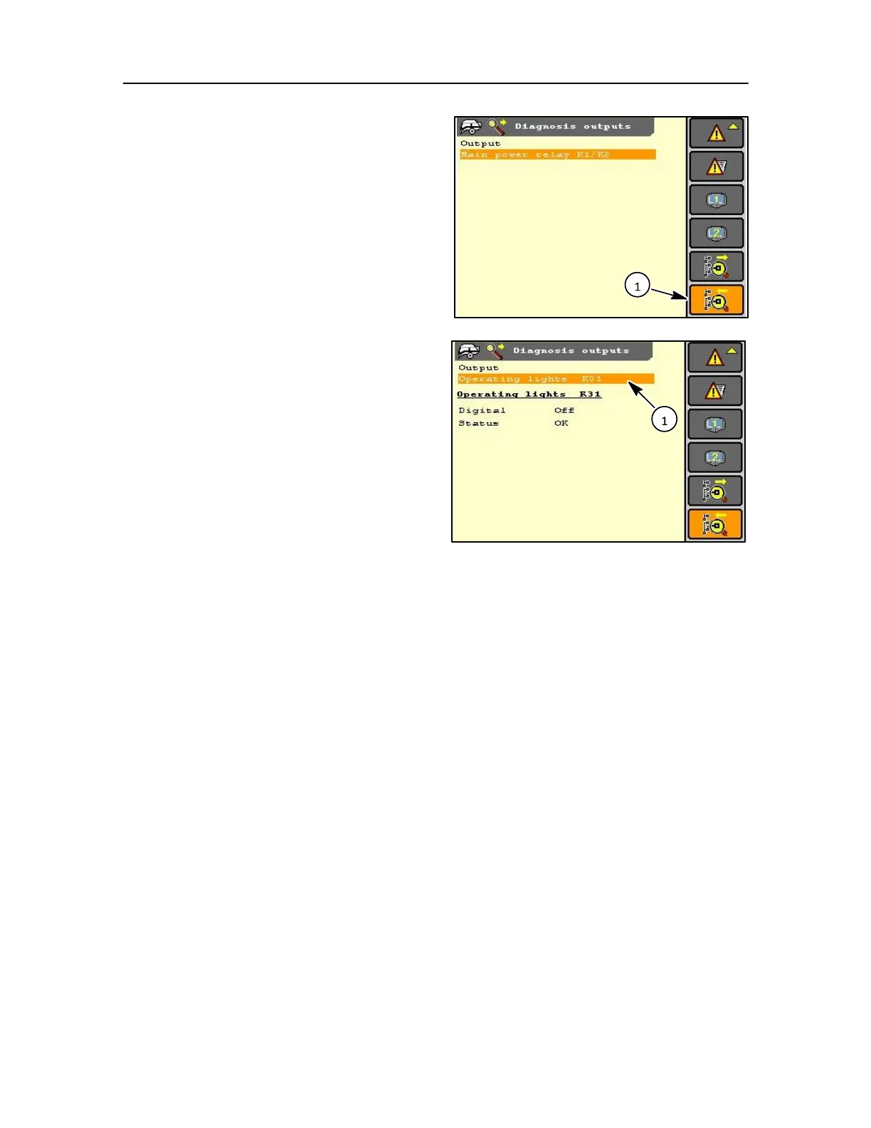 using the diagnosis output icon (1), and by use of the